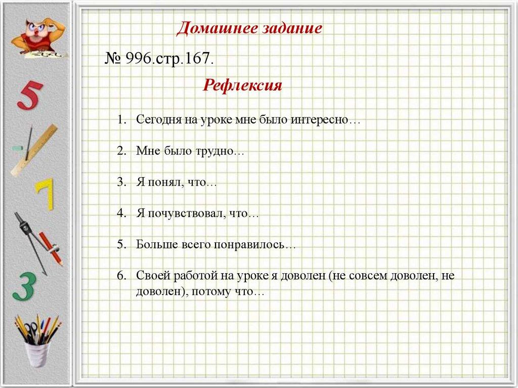 6. Своей работой на уроке я доволен (не совсем доволен, не