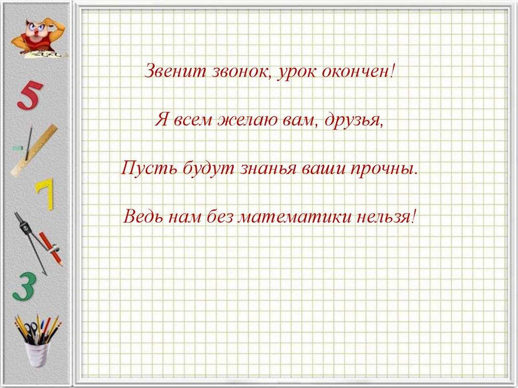 Звенит звонок, урок окончен!Я всем желаю вам, друзья,