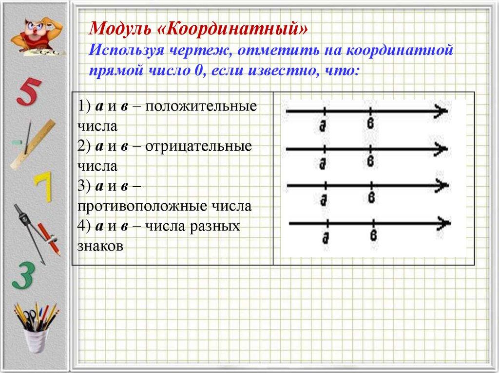 Модуль «Координатный»Используя чертеж, отметить на координатной