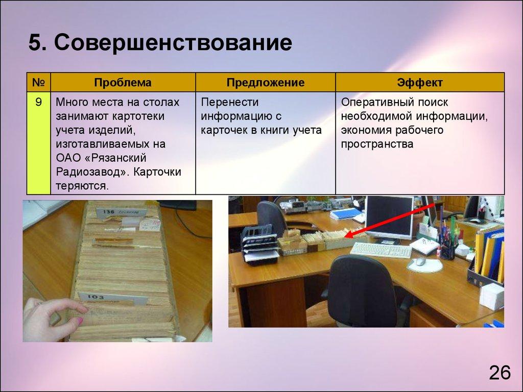 1. Упорядочение производственной среды по системе «5С» (бережливый офис)