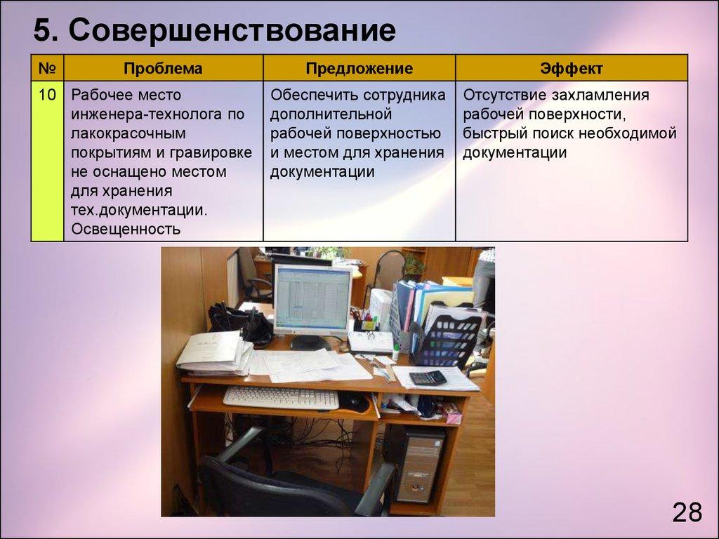 стандартизация рабочих мест инженеров-технологов;