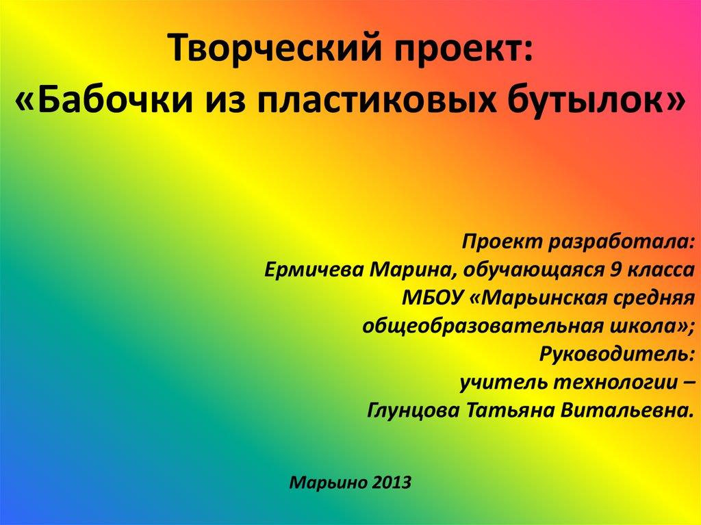 Творческий проект:«Бабочки из пластиковых бутылок»