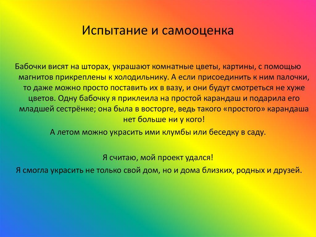 Испытание и самооценкаБабочки висят на шторах, украшают комнатные цветы, картины, с помощью