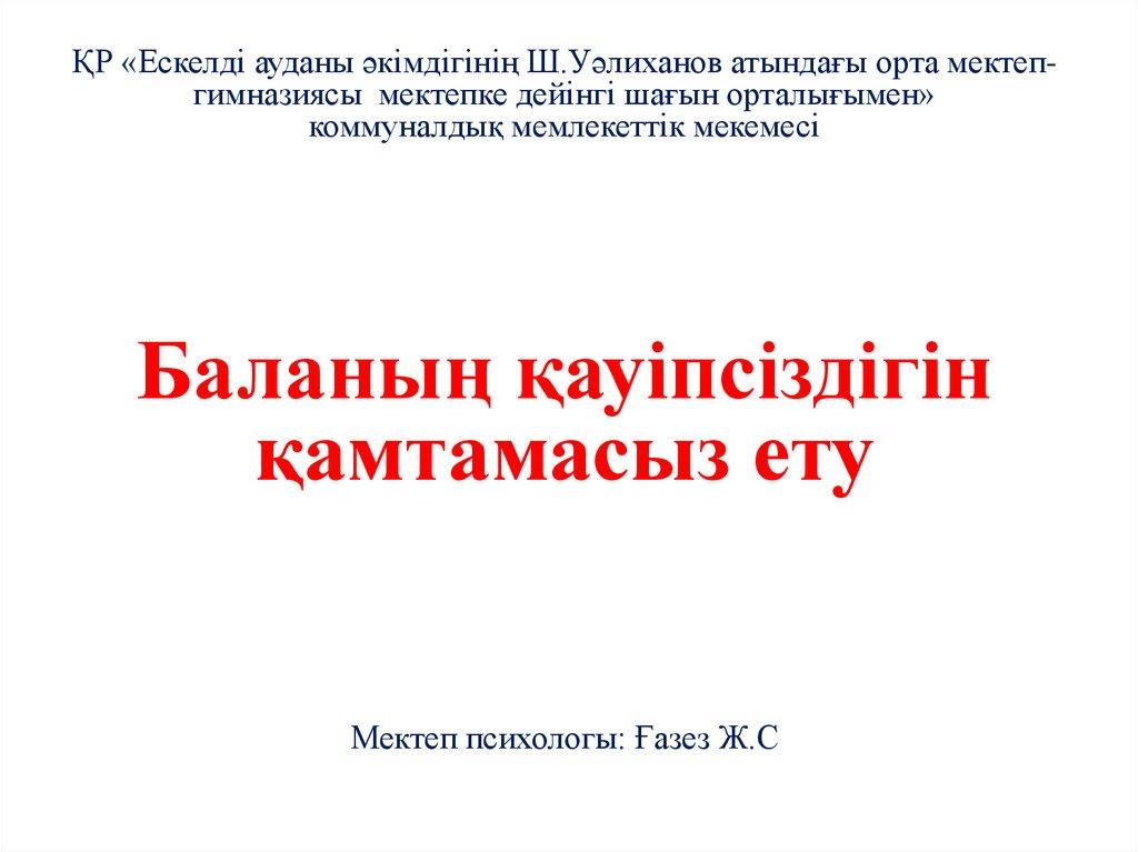 ҚР «Ескелді ауданы әкімдігінің Ш.Уәлиханов атындағы орта мектепгимназиясы мектепке дейінгі шағын орталығымен»коммуналдық мемлекеттік мекемесі