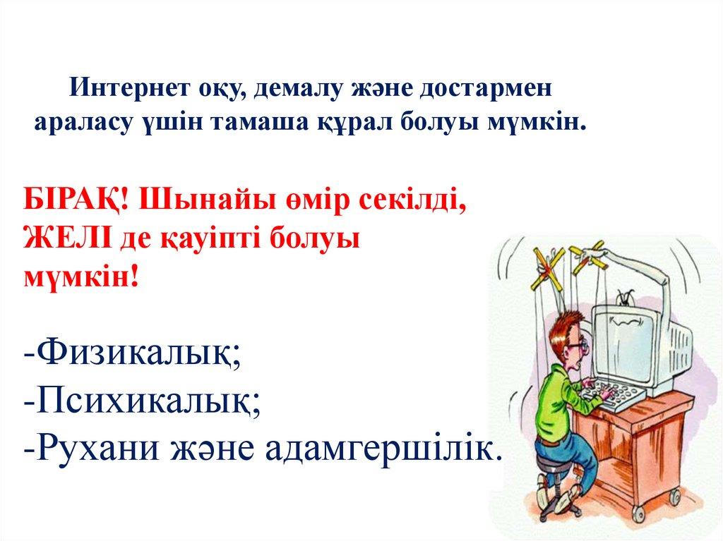 Интернет оқу, демалу және достарменараласу үшін тамаша құрал болуы мүмкін.