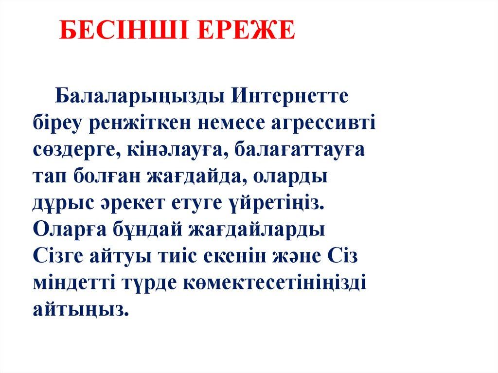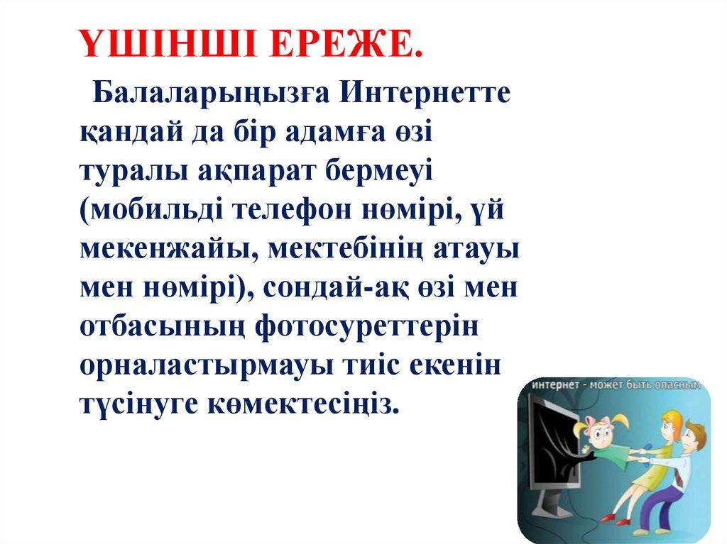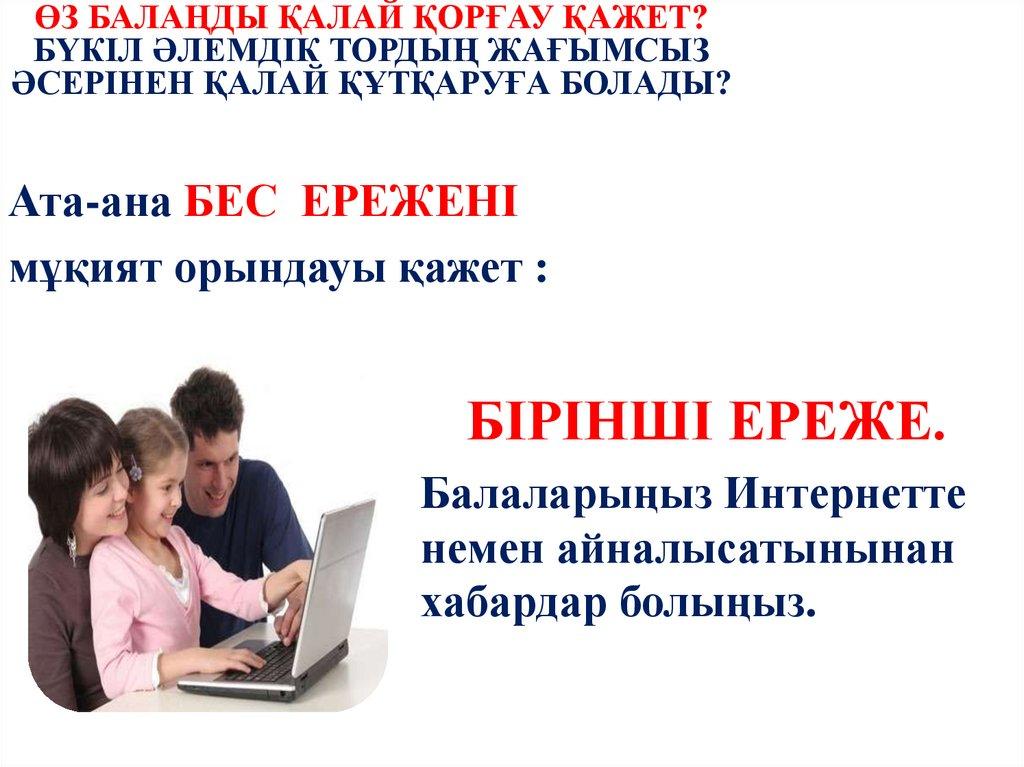 ҮШІНШІ ЕРЕЖЕ.Балаларыңызға Интернетте