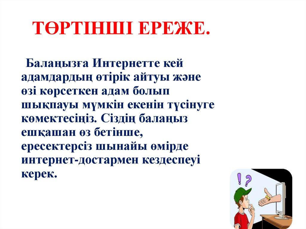 ТӨРТІНШІ ЕРЕЖЕ.Балаңызға Интернетте кей