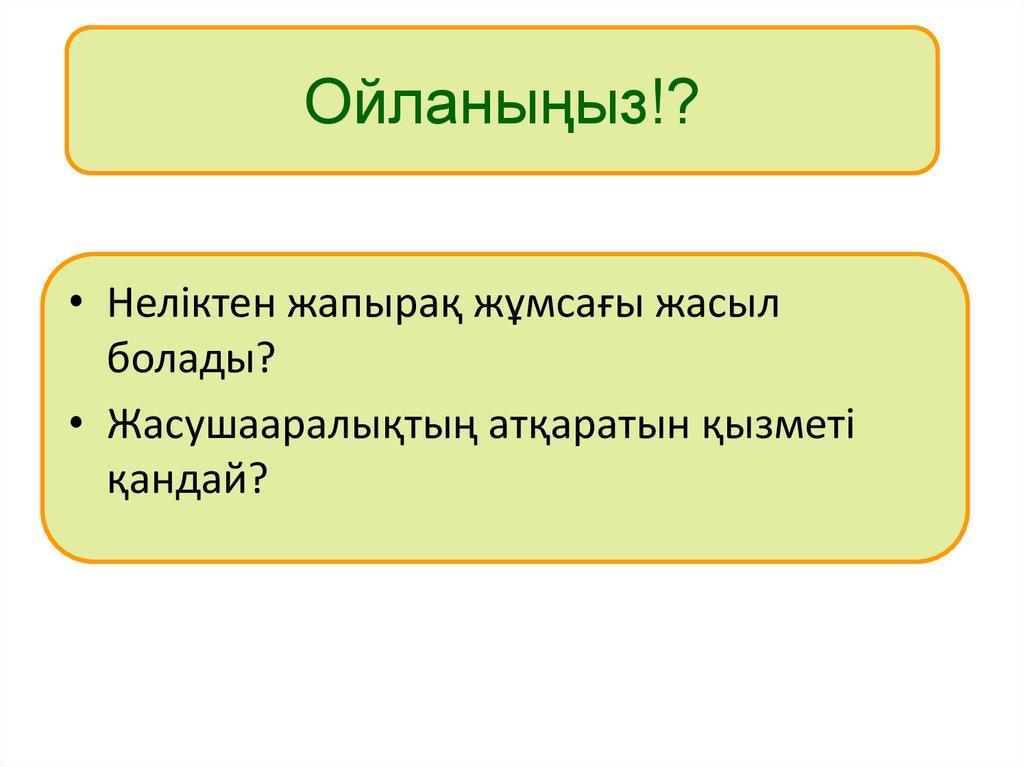 Ойланыңыз!?• Неліктен жапырақ жұмсағы жасыл