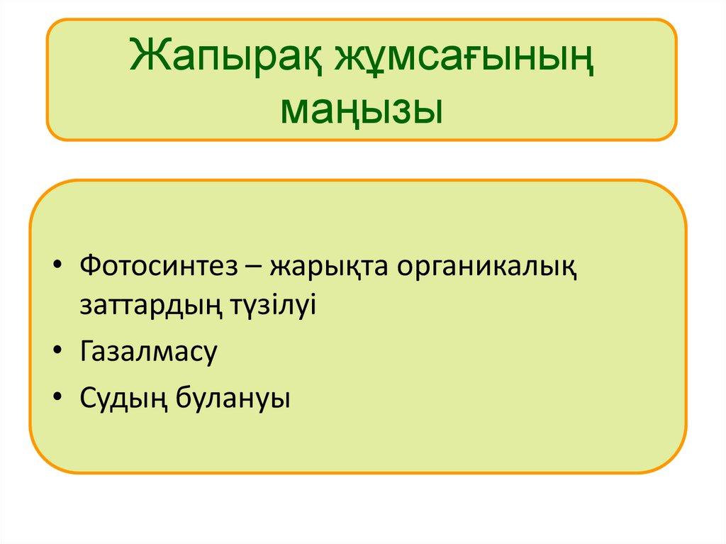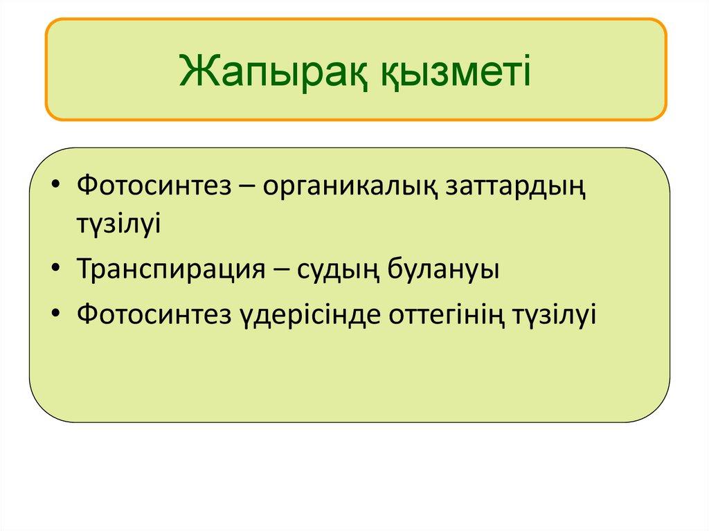 Жапырақ қызметі• Фотосинтез – органикалық заттардың