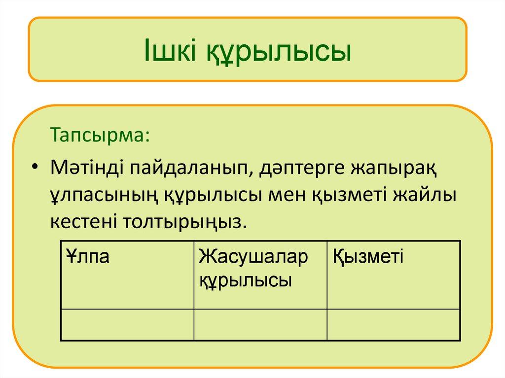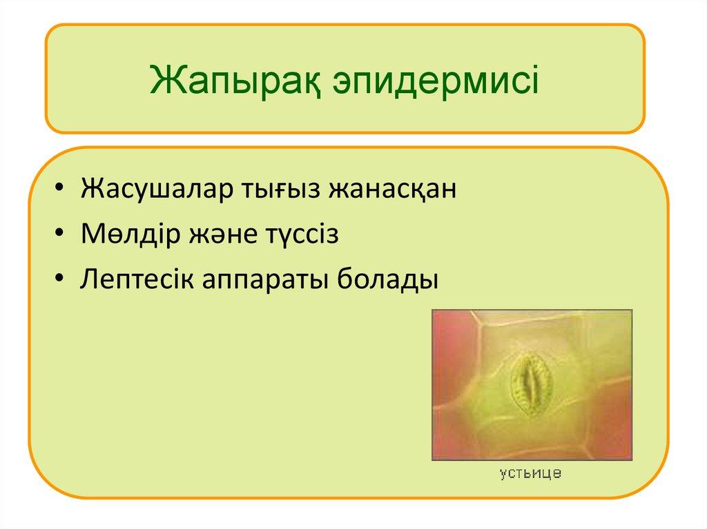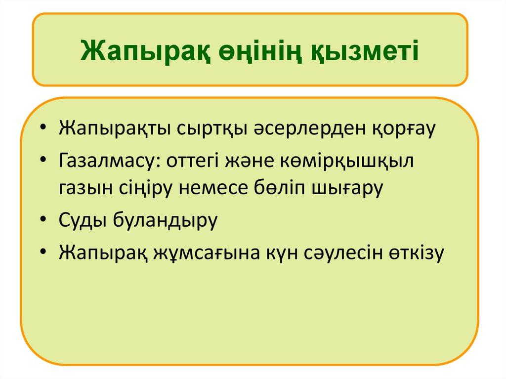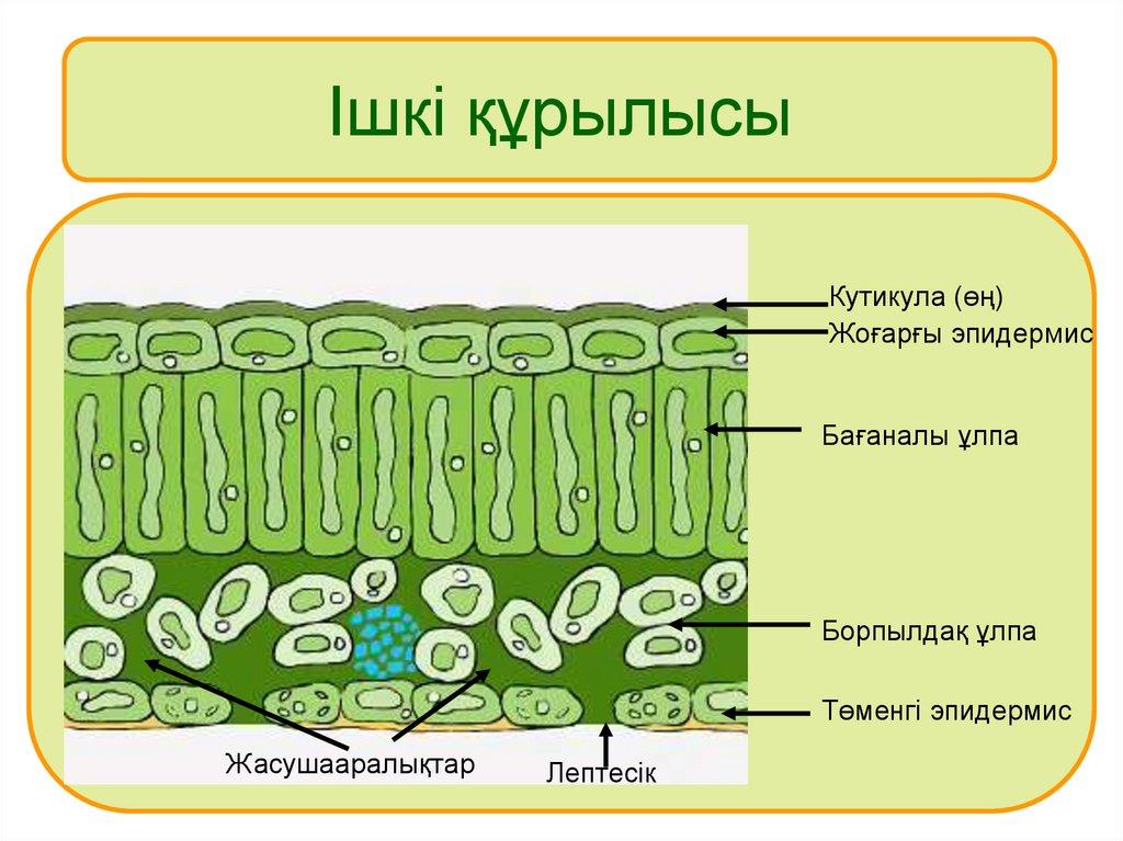 жапырақтың ішкі құрылысын сипаттаужәне оның құрылысы мен қызметі