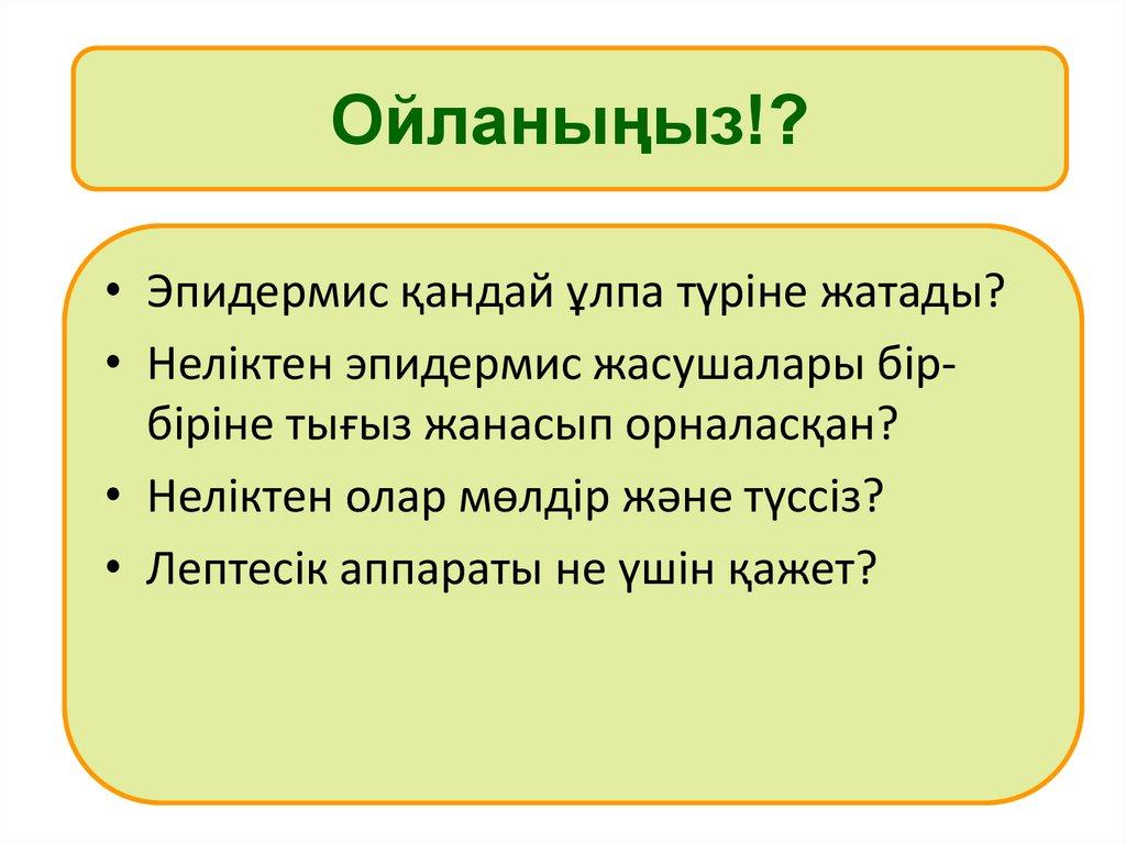 Ойланыңыз!?• Эпидермис қандай ұлпа түріне жатады?