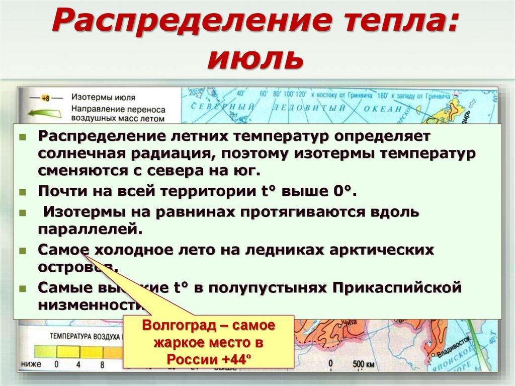Распределение тепла:июль
