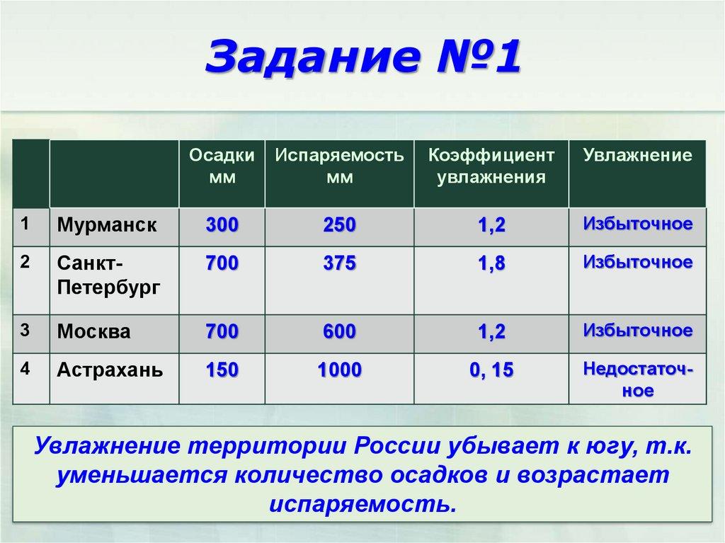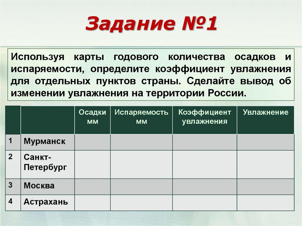 Задание №1Используя карты годового количества осадков и