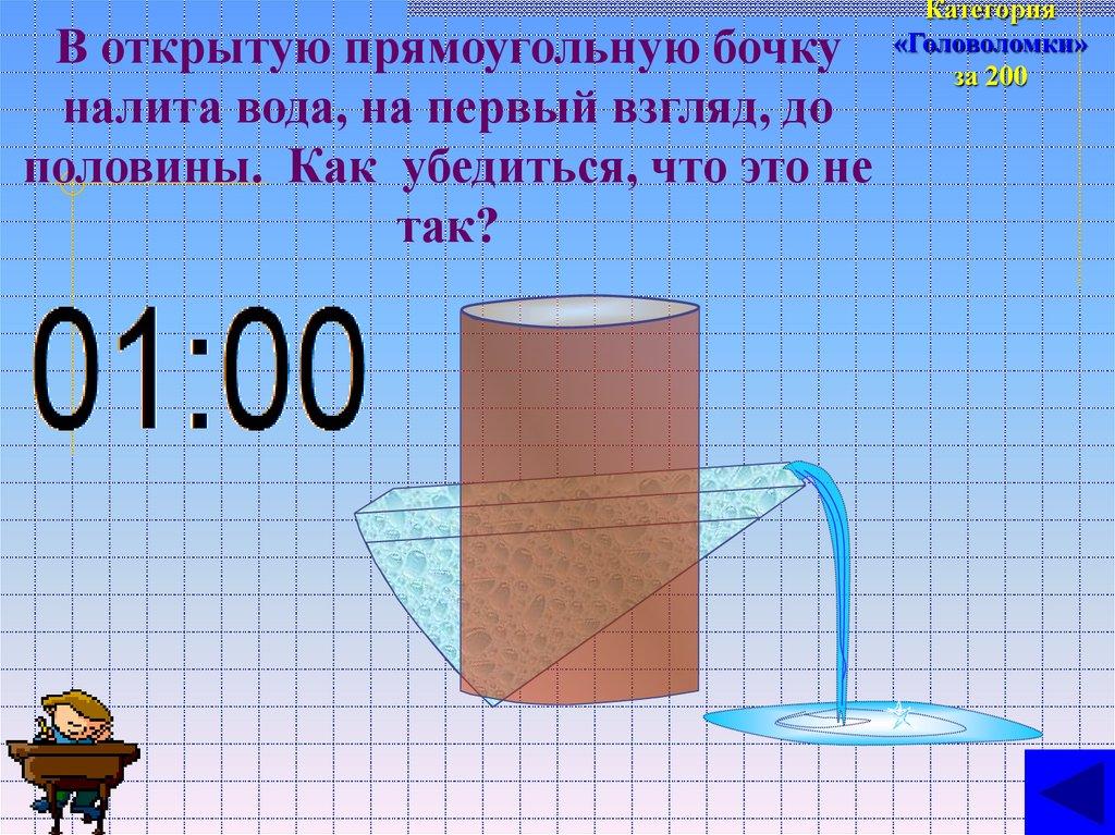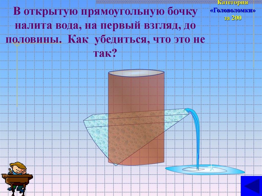 В открытую прямоугольную бочкуналита вода, на первый взгляд, до