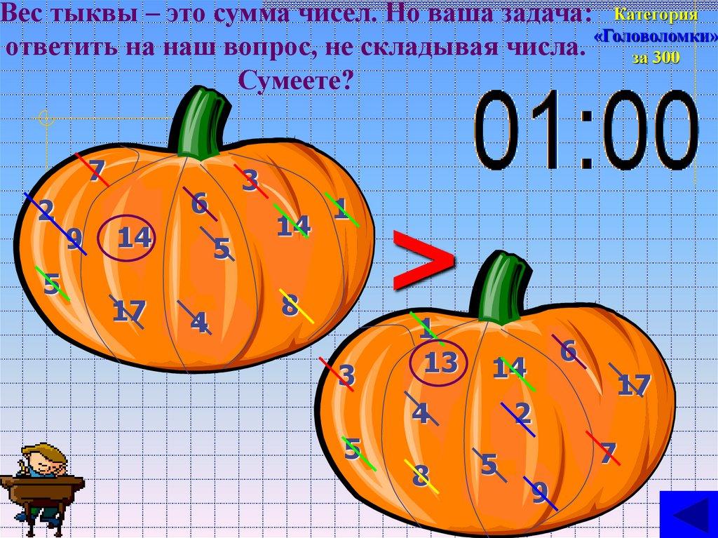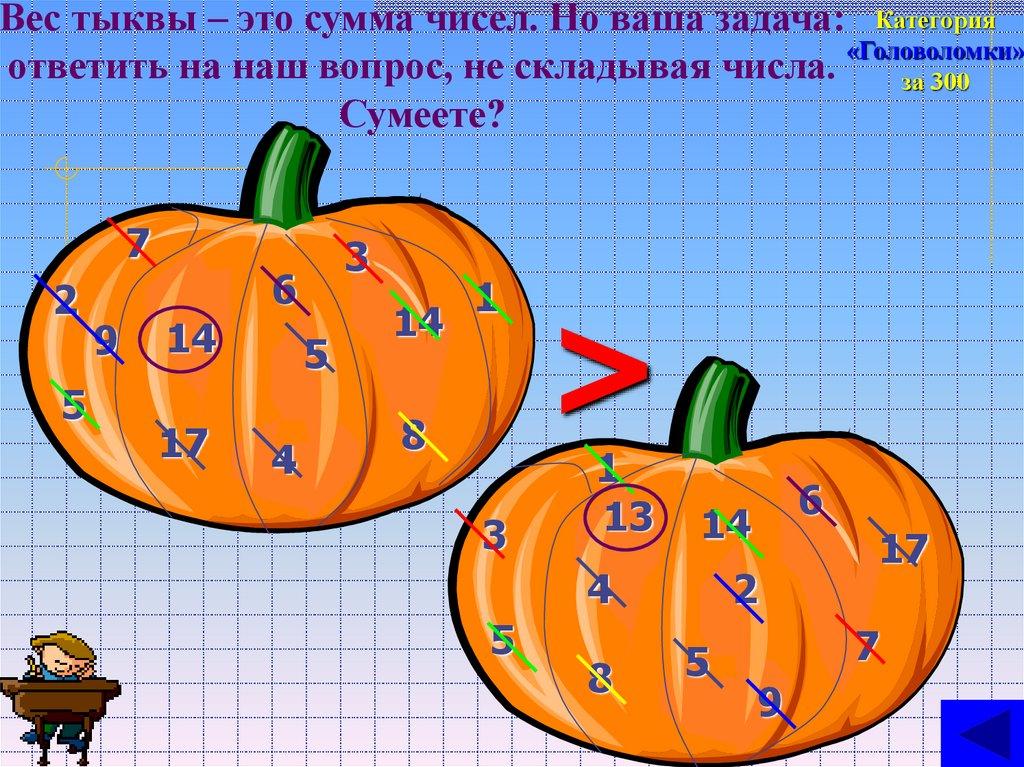 Вес тыквы – это сумма чисел. Но ваша задача: Категория«Головоломки»