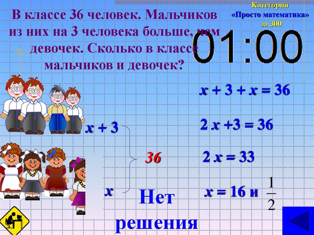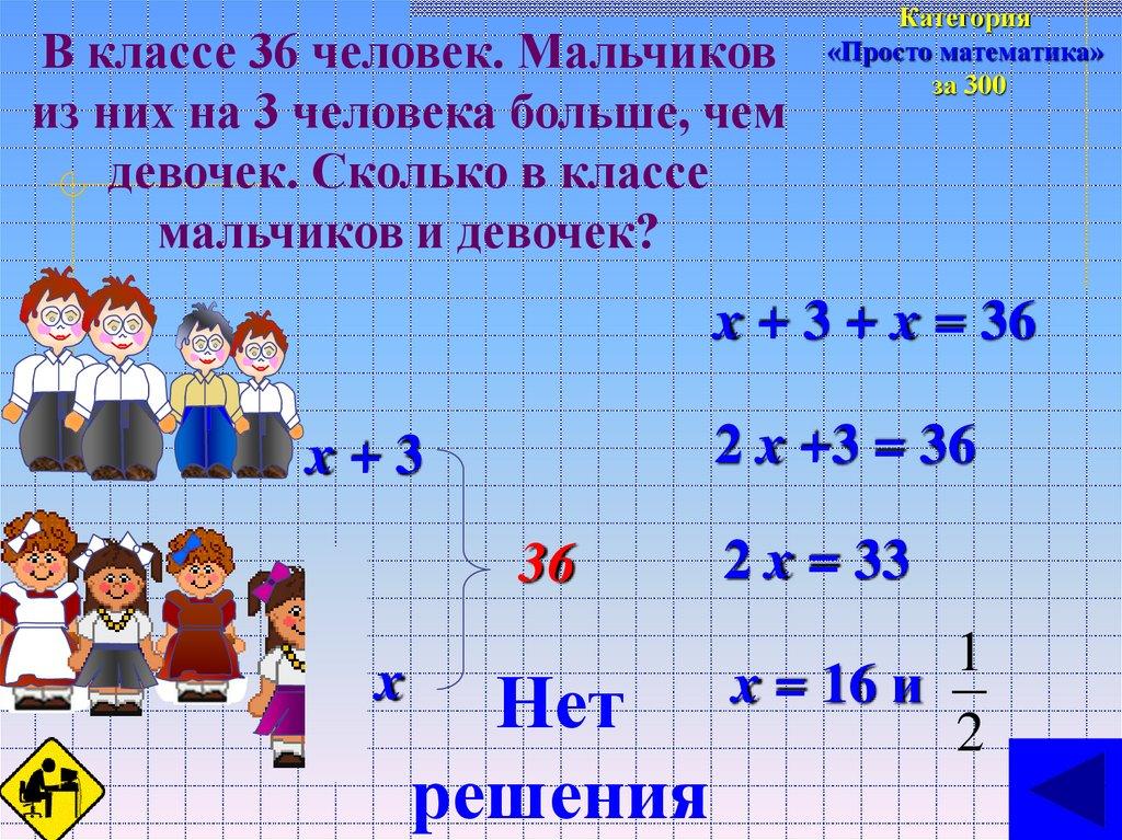 В классе 36 человек. Мальчиковиз них на 3 человека больше, чем