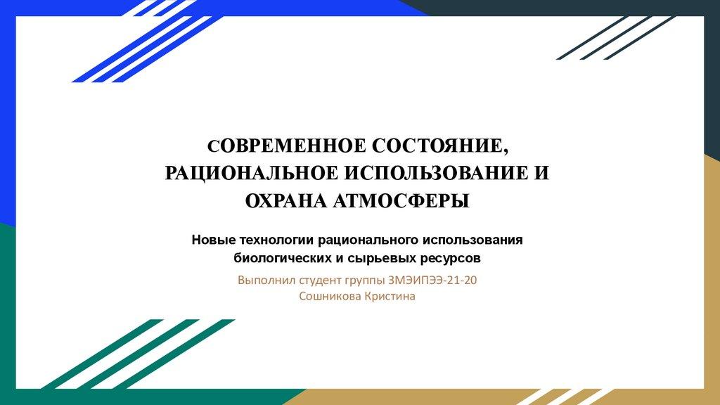 Современное состояние, рациональное использование и охрана атмосферы