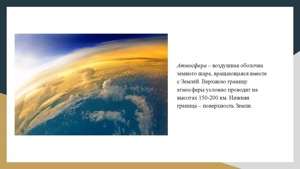 Атмосфера – воздушная оболочказемного шара, вращающаяся вместе