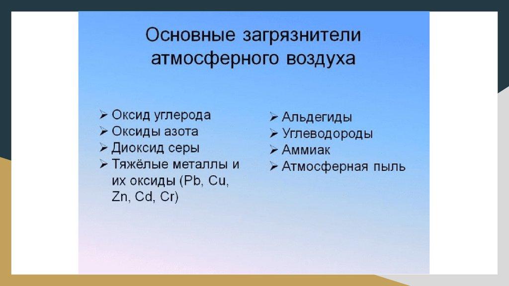 веществ, которые содержатся в атмосферном воздухе и которые в определенных концентрациях