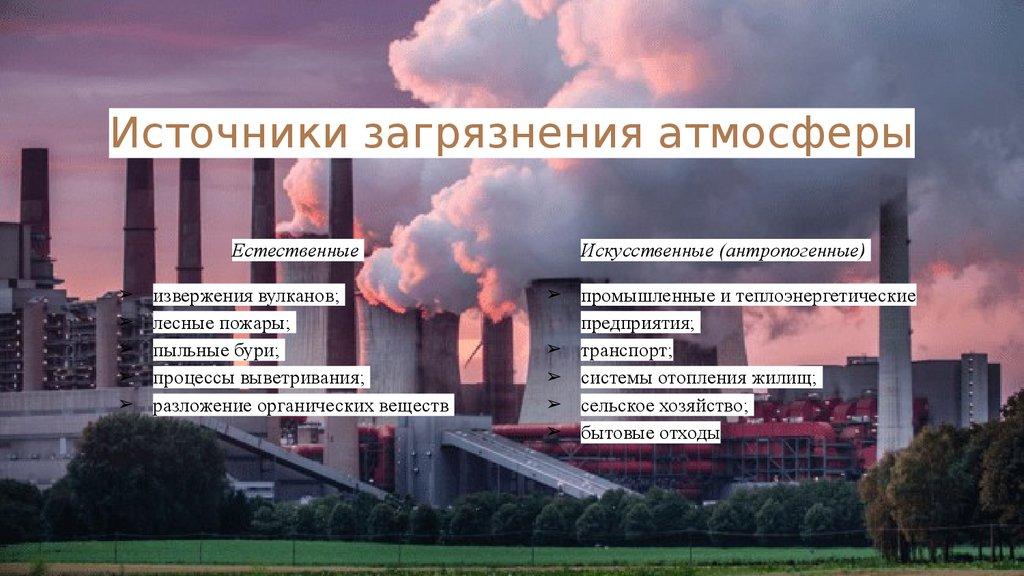 ➢ Загрязнение атмосферного воздуха — поступление в атмосферный воздух или образование в нем