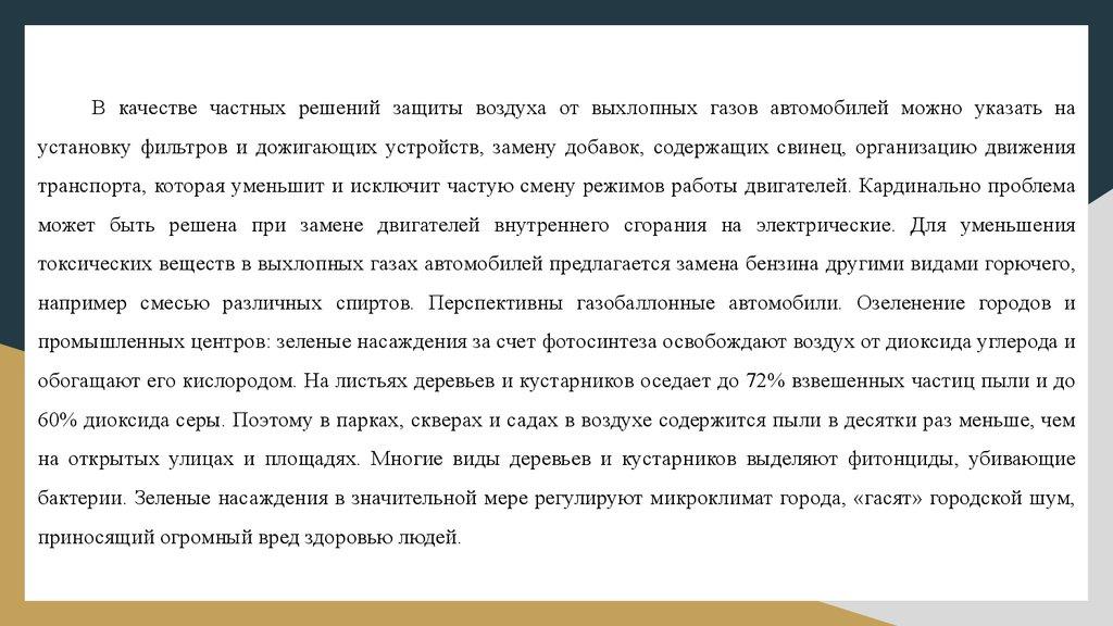например смесью различных спиртов. Перспективны газобаллонные автомобили. Озеленение городов и
