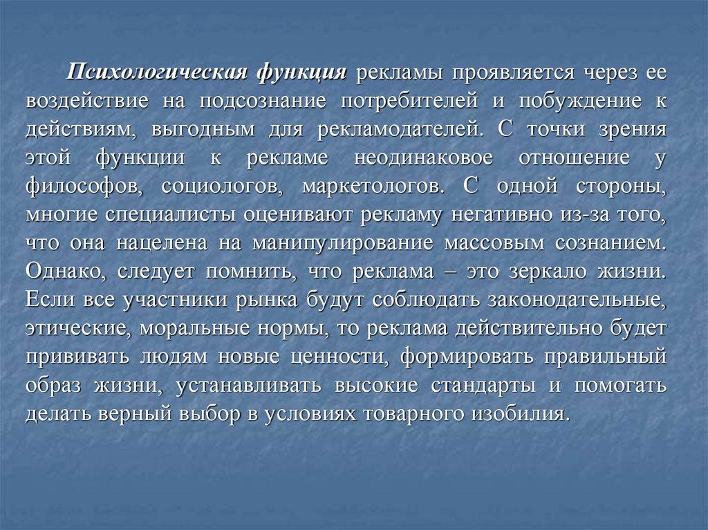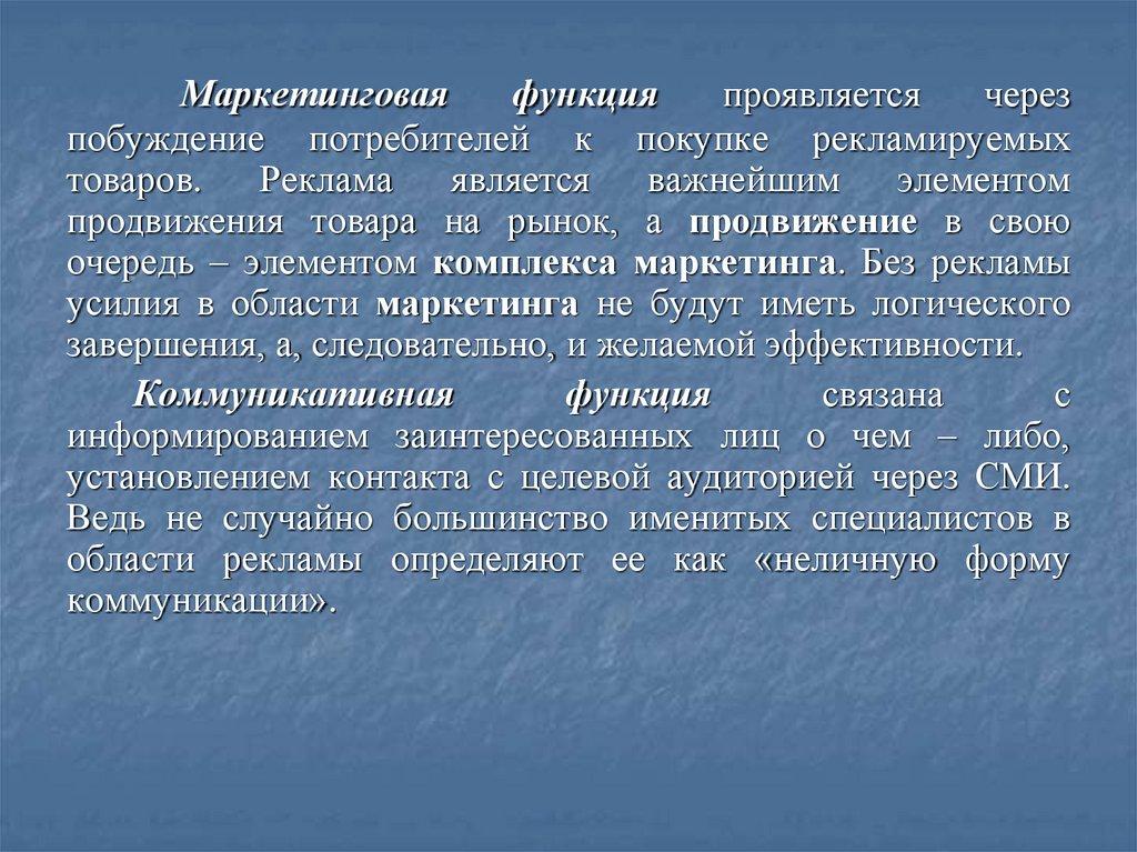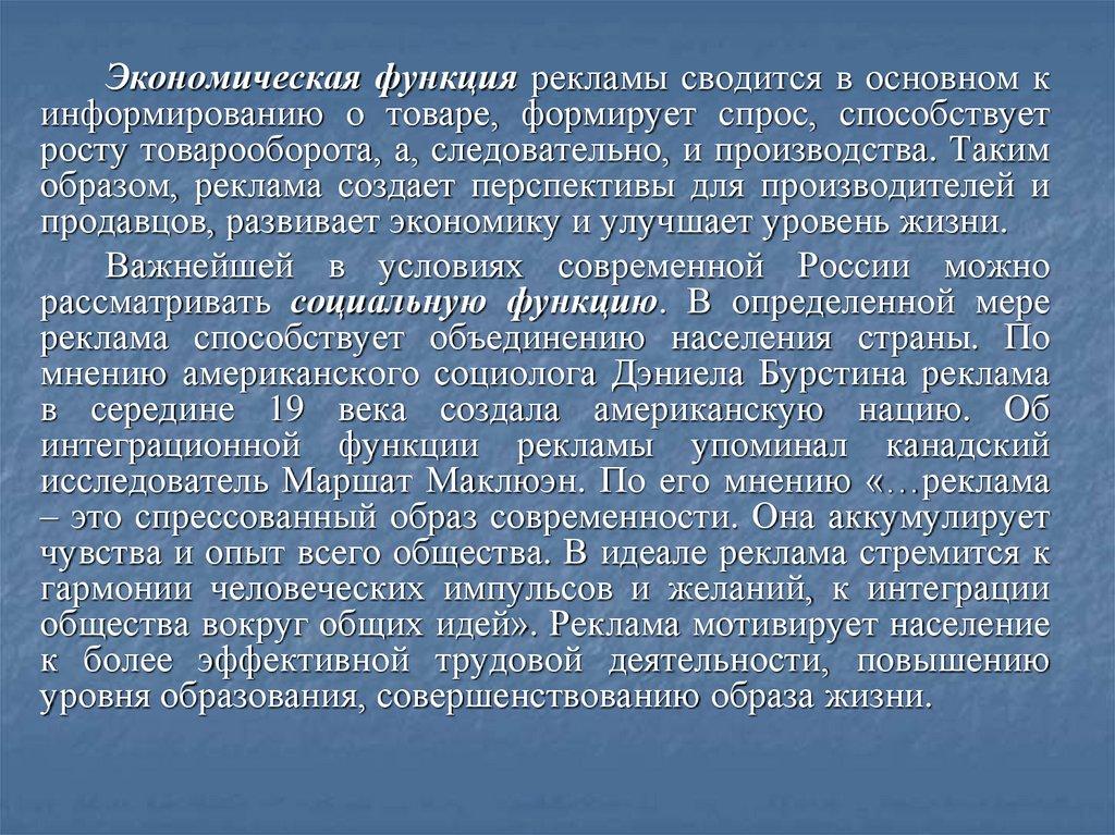 Экономическая функция рекламы сводится в основном кинформированию о товаре, формирует спрос, способствует