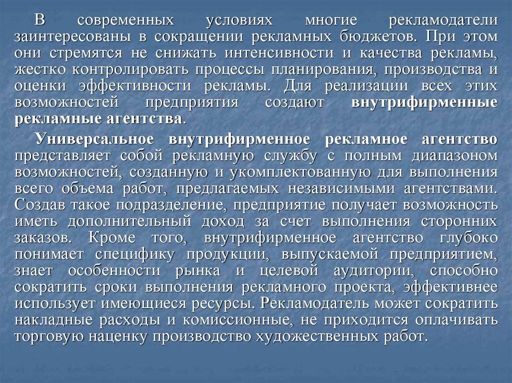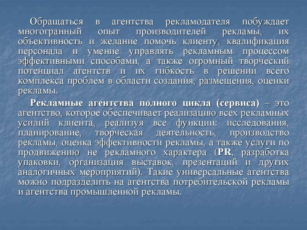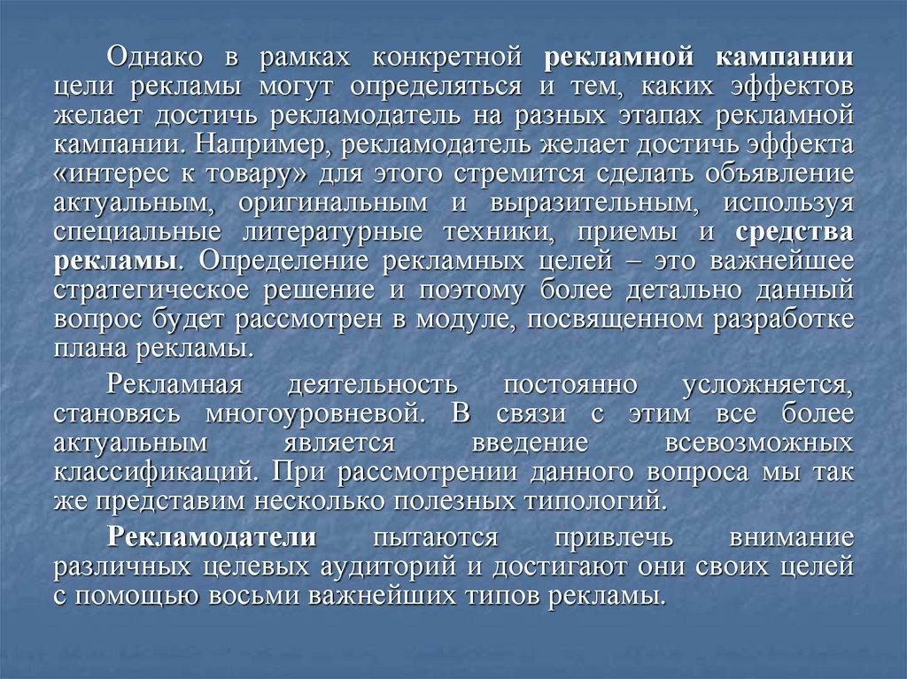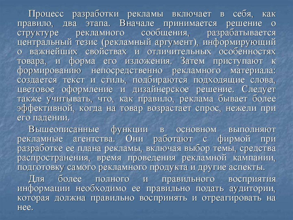 рекламной деятельности предполагает анализ таких