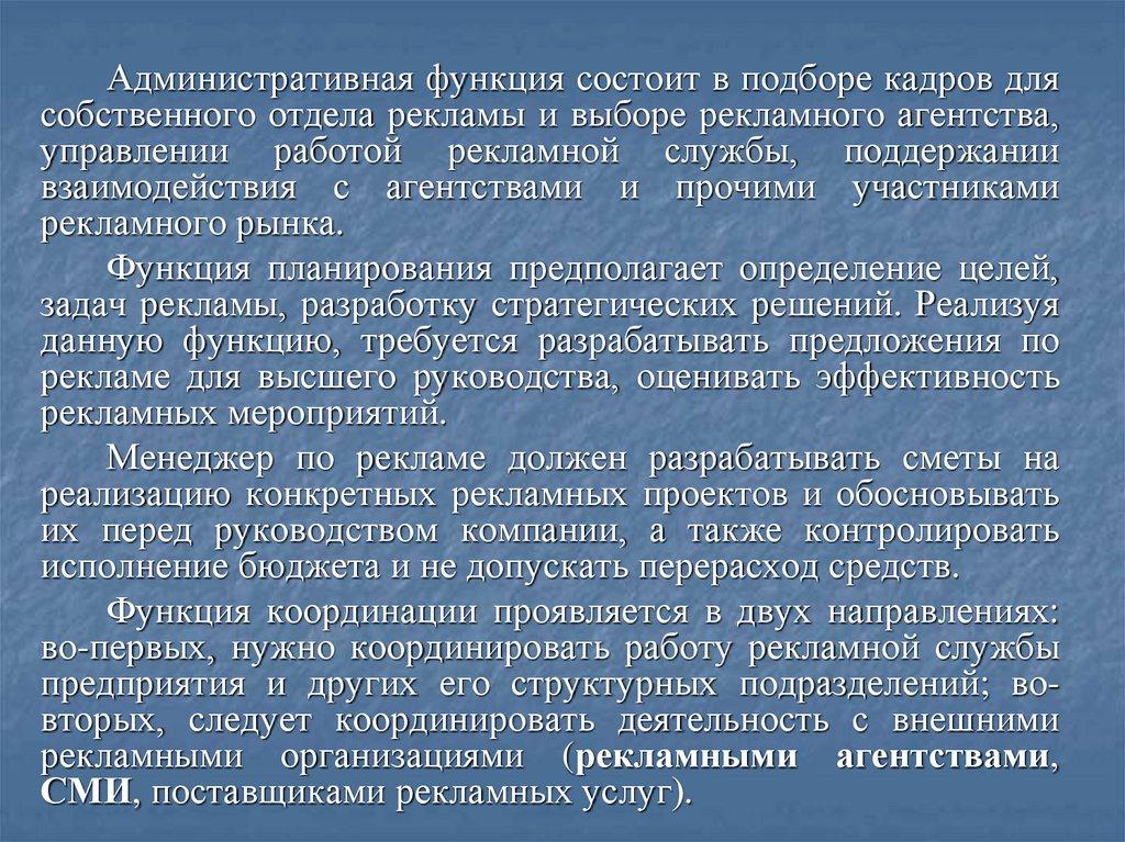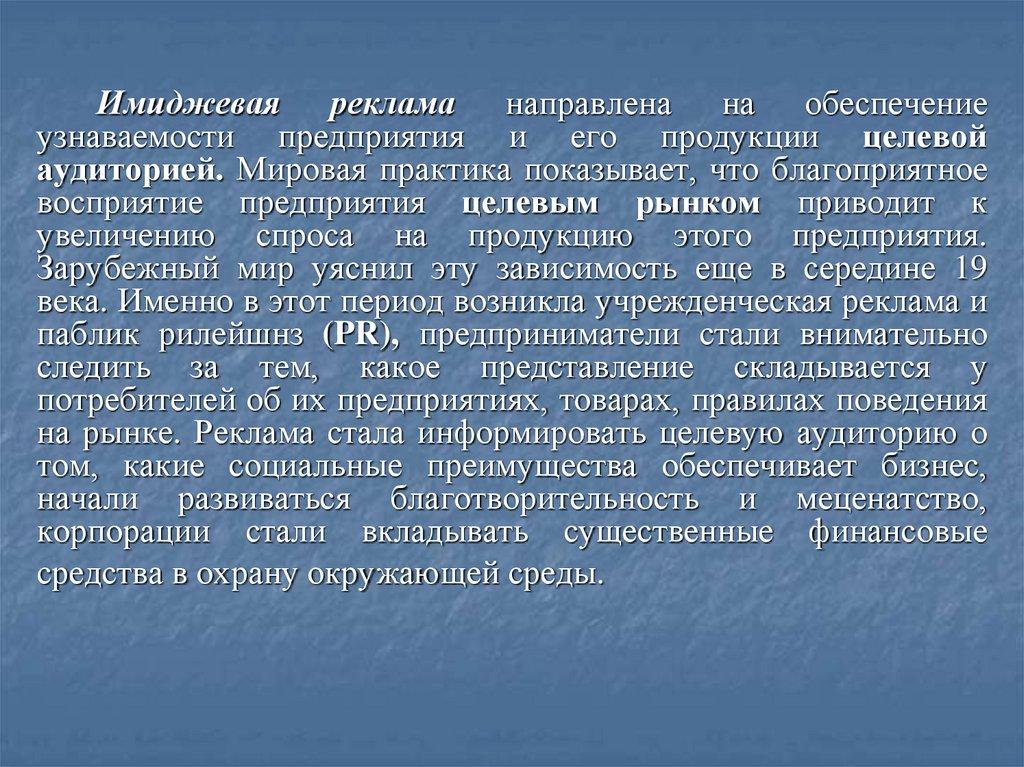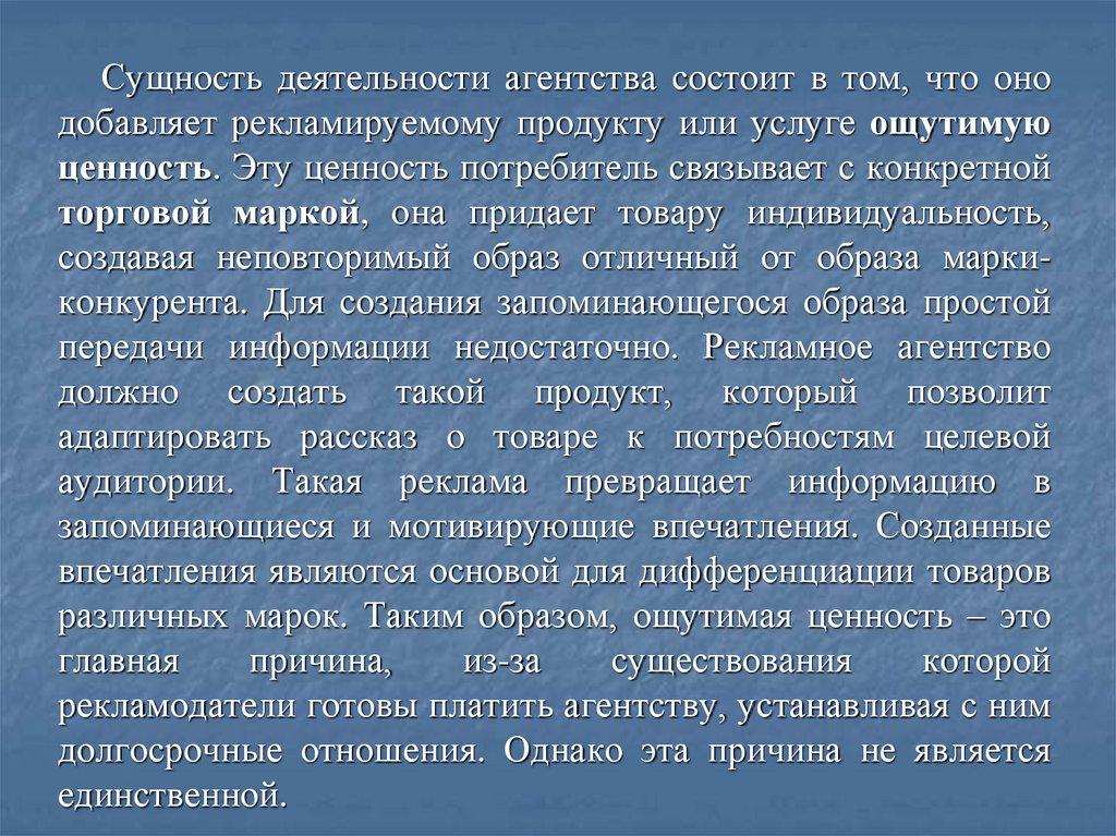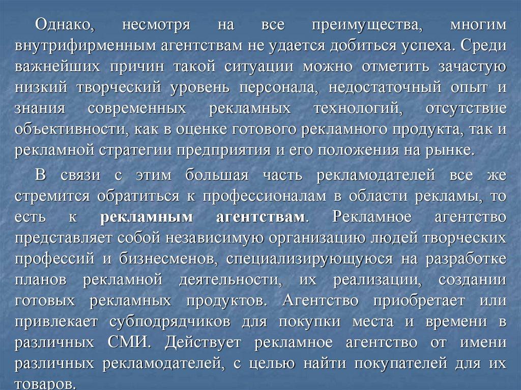 рекламной деятельности предполагает анализ таких