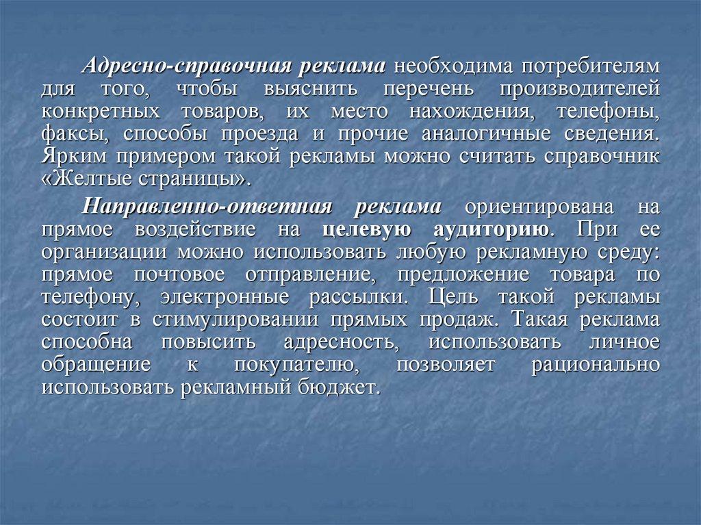 рекламной литературы непосредственно потенциальным
