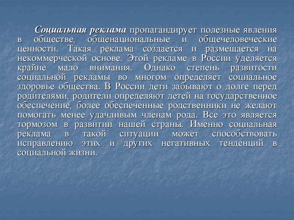 чувства и опыт всего общества. В идеале реклама стремится к