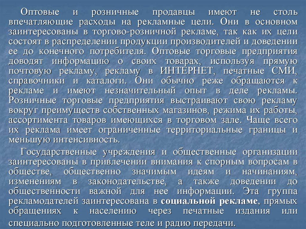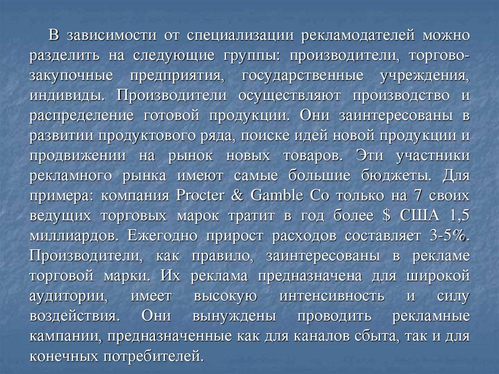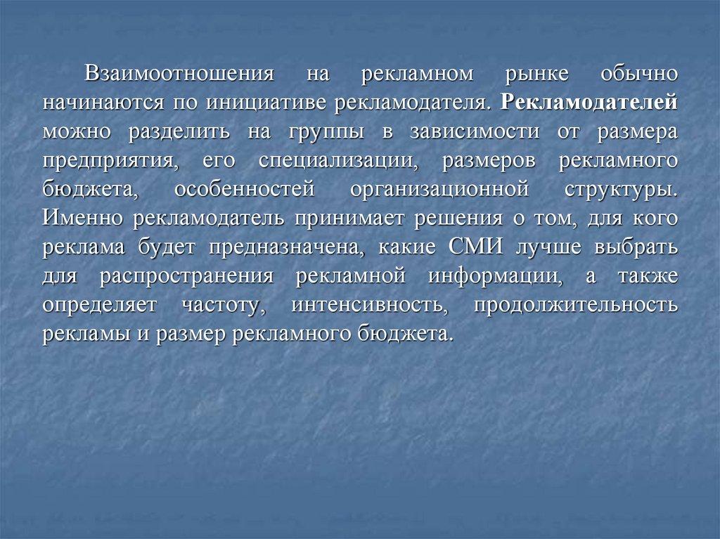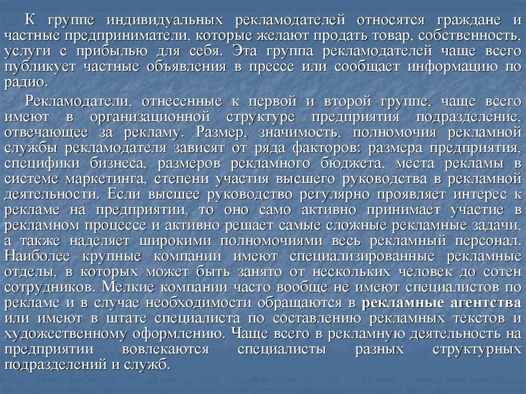 Характеристика рекламодателя, рекламного