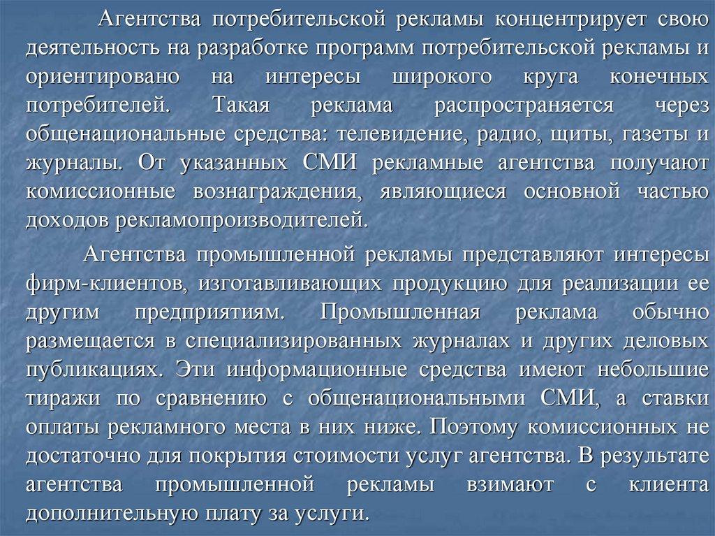 агентства, средств распространения рекламы