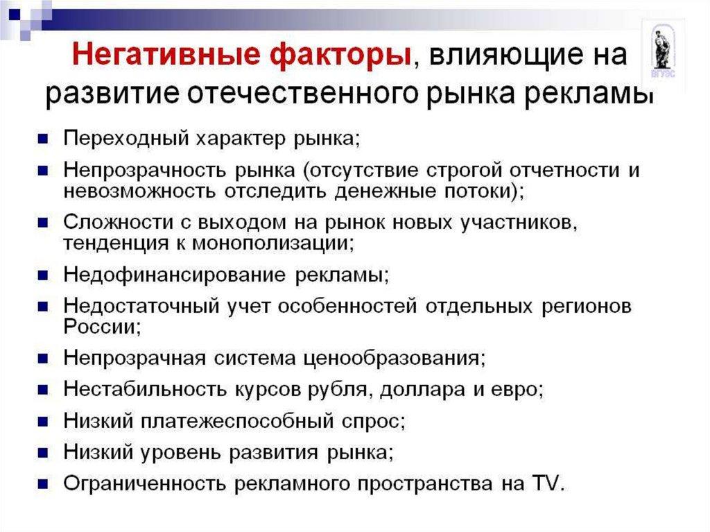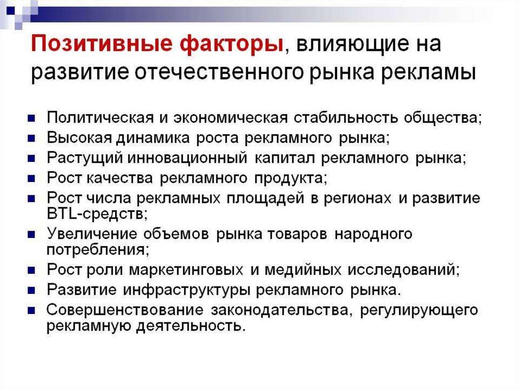 и особенности развития рекламы.