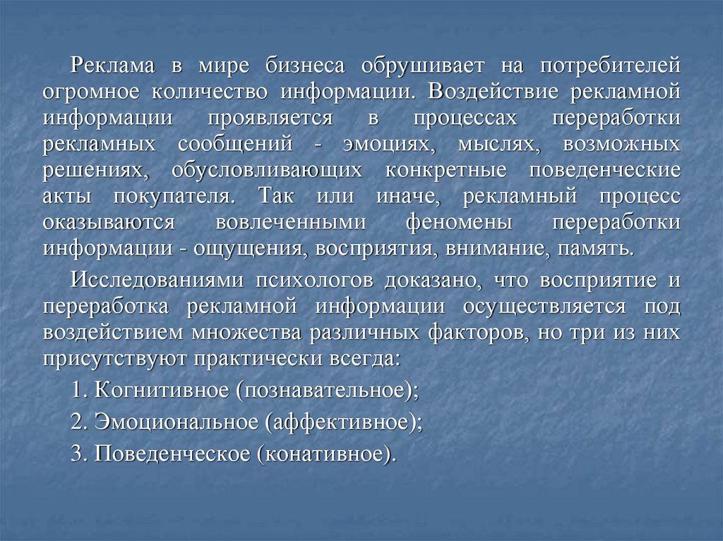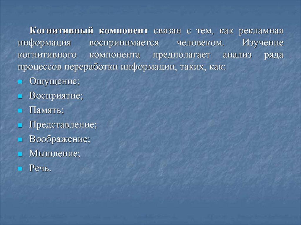 Когнитивный компонент связан с тем, как рекламнаяинформация