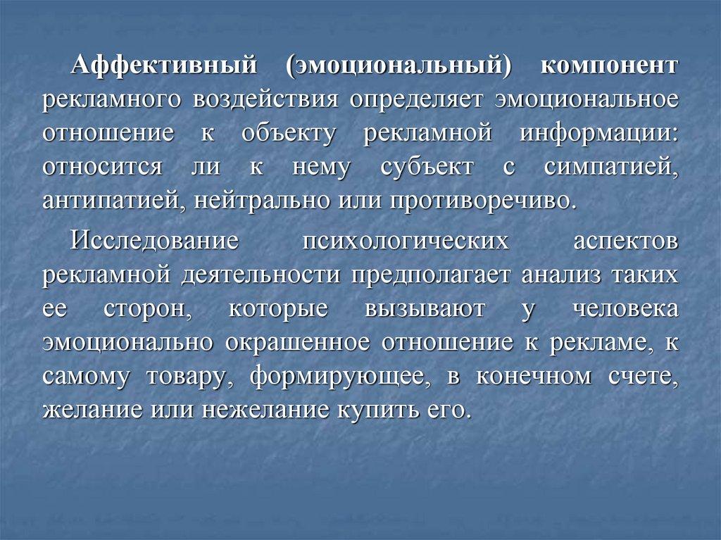 Аффективный (эмоциональный) компонентрекламного воздействия определяет эмоциональное