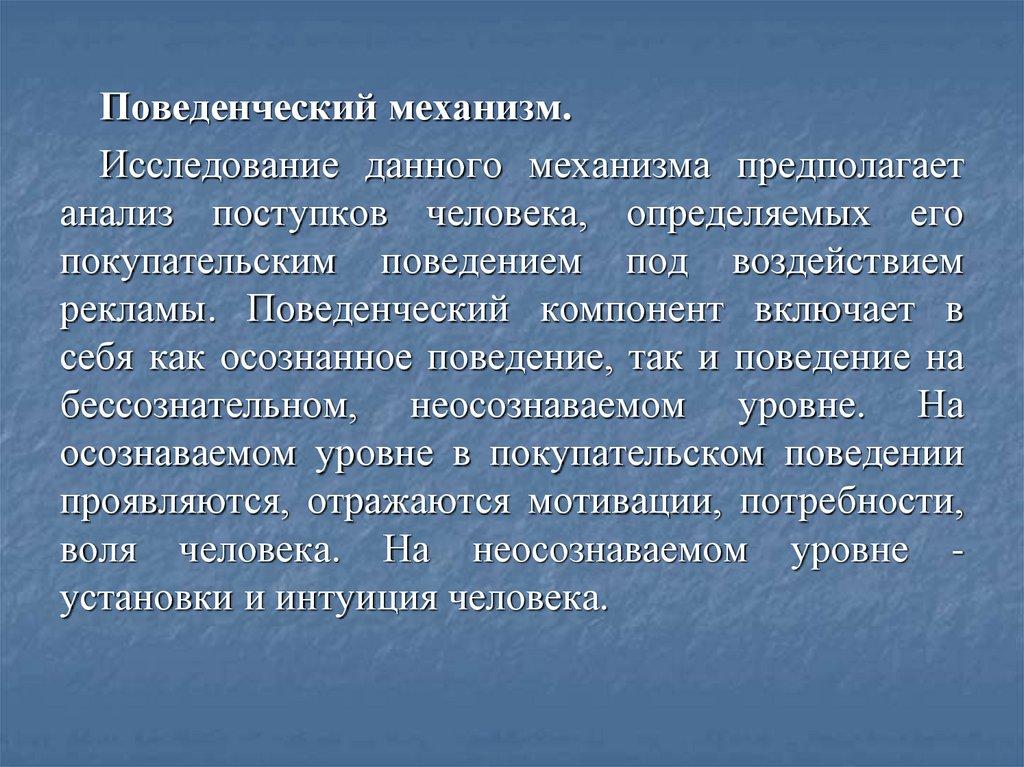 Поведенческий механизм.Исследование данного механизма предполагает
