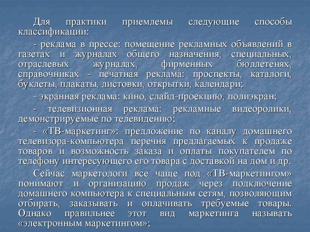 Классификация рекламной деятельности и ее