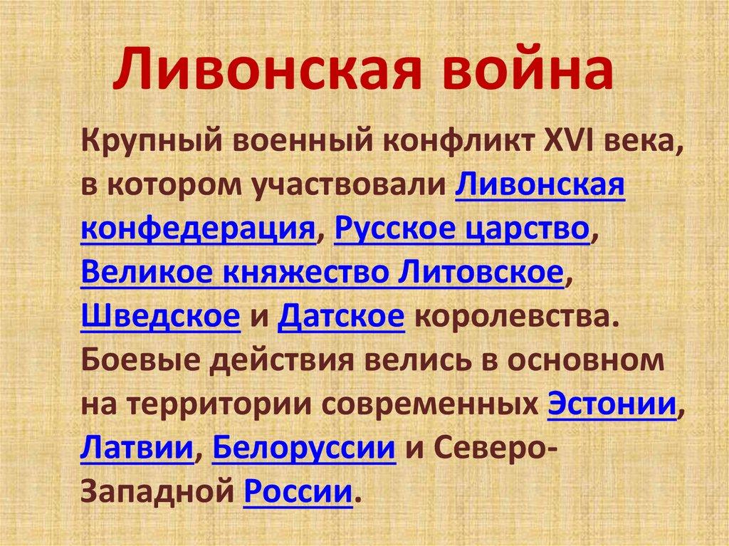 Ливонская войнаКрупный военный конфликт XVI века,