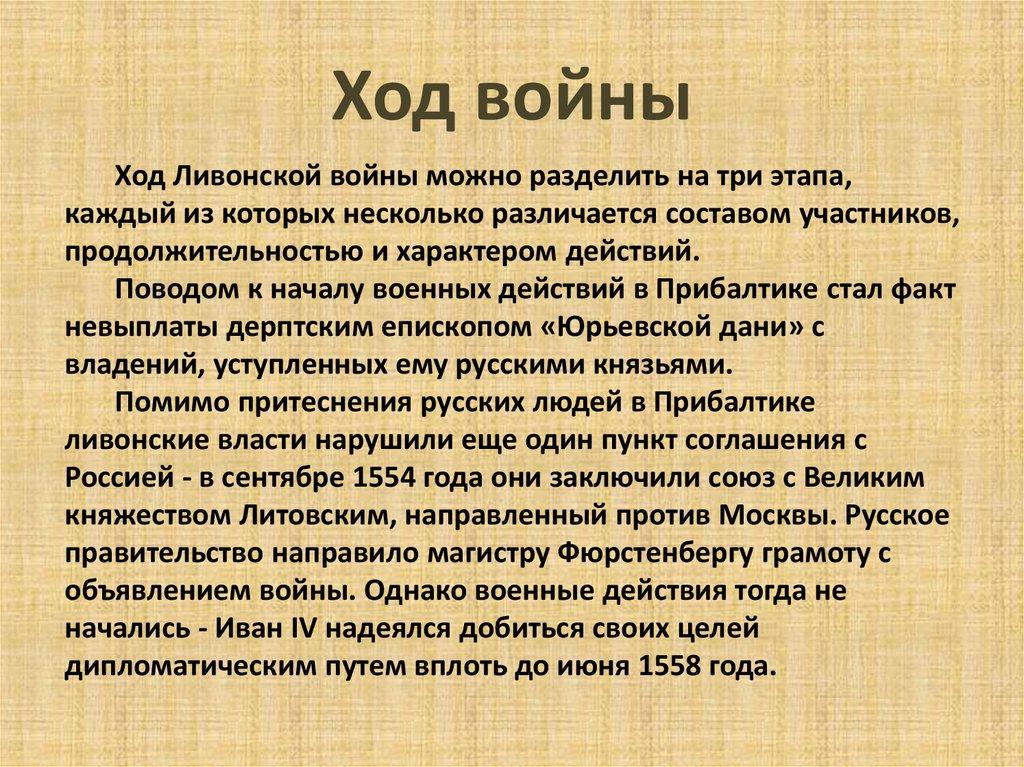Ход войныХод Ливонской войны можно разделить на три этапа,