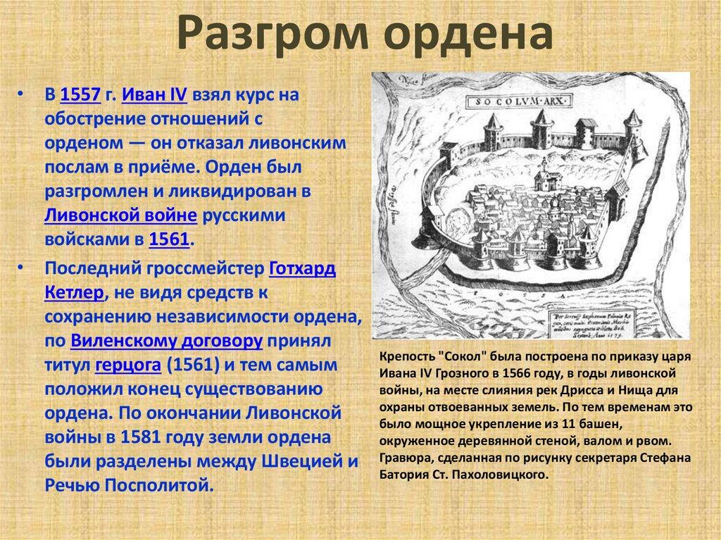 ордена. По окончании Ливонской