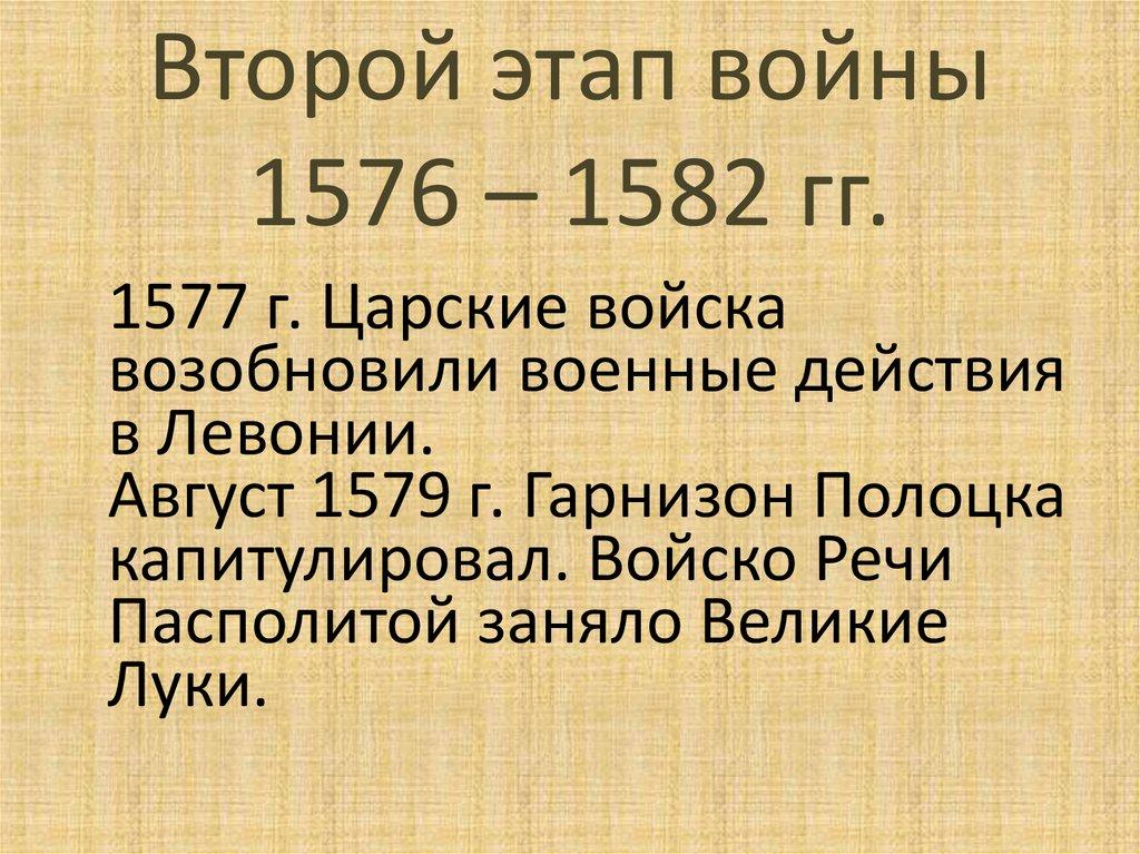 Второй этап войны1576 – 1582 гг.