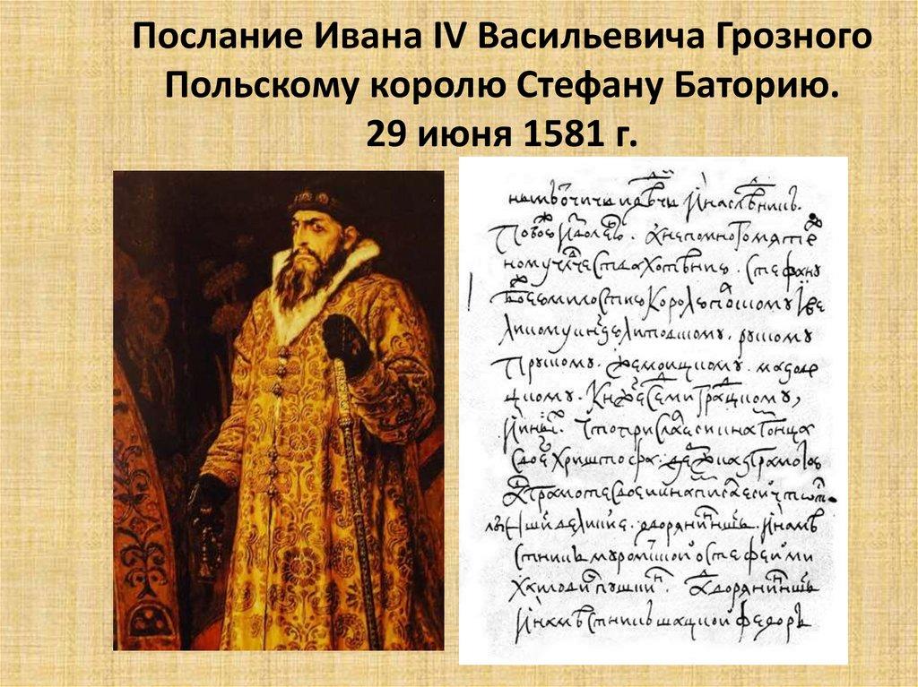 Послание Ивана IV Васильевича ГрозногоПольскому королю Стефану Баторию.