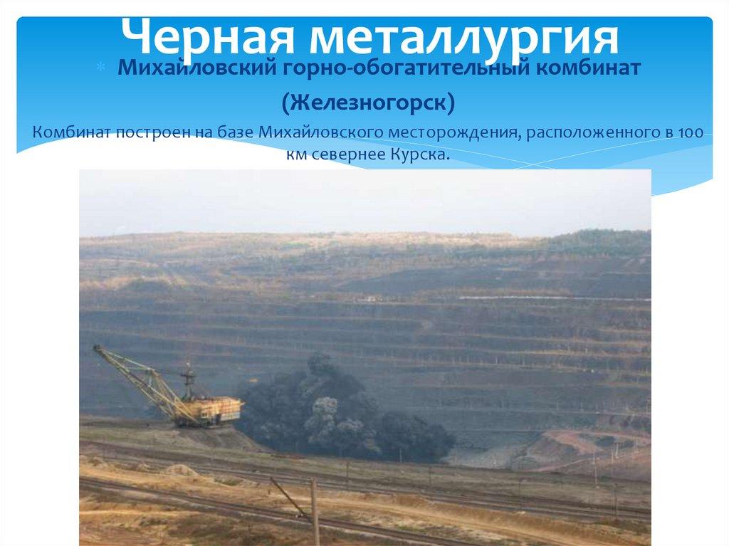 Комбинат построен на базе Михайловского месторождения, расположенного в 100