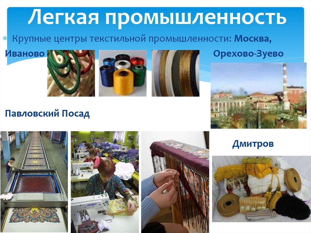 Легкая промышленностьКрупные центры текстильной промышленности: Москва,