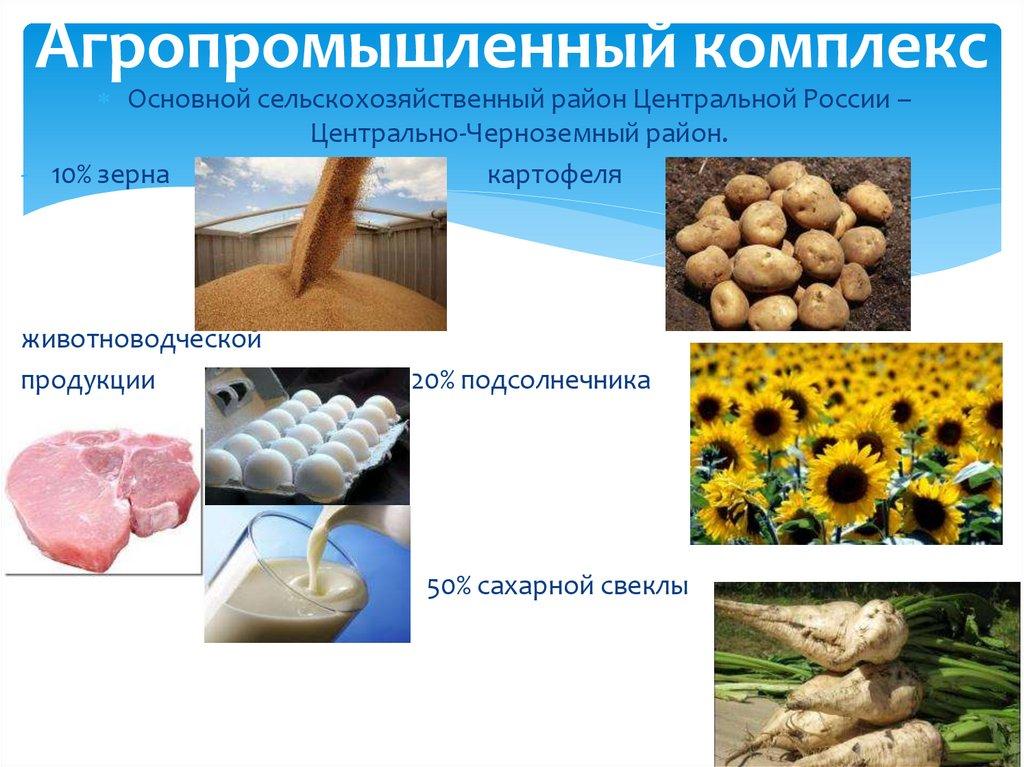 Агропромышленный комплексОсновной сельскохозяйственный район Центральной России –