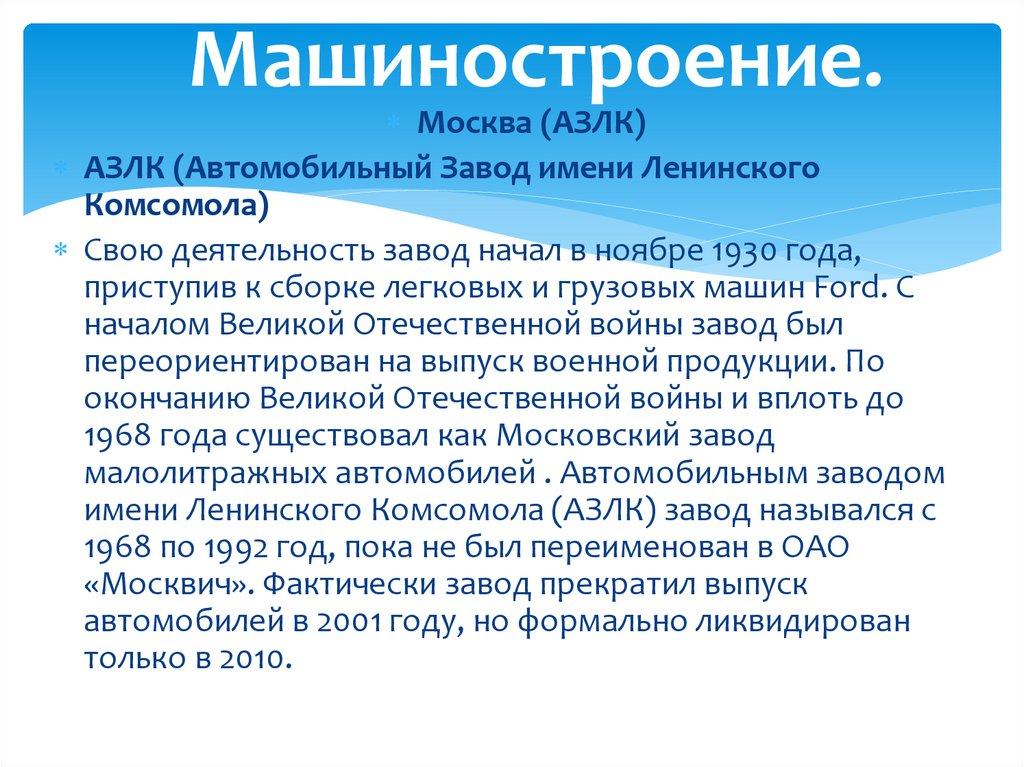 имени Ленинского Комсомола (АЗЛК) завод назывался с