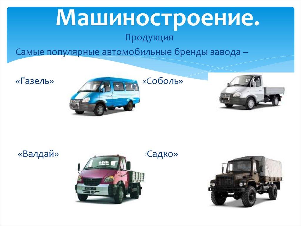 Самые популярные автомобильные бренды завода –