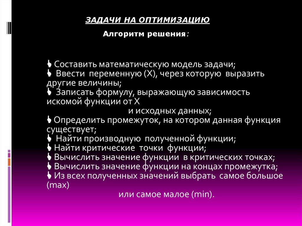 ЗАДАЧИ НА ОПТИМИЗАЦИЮАлгоритм решения: