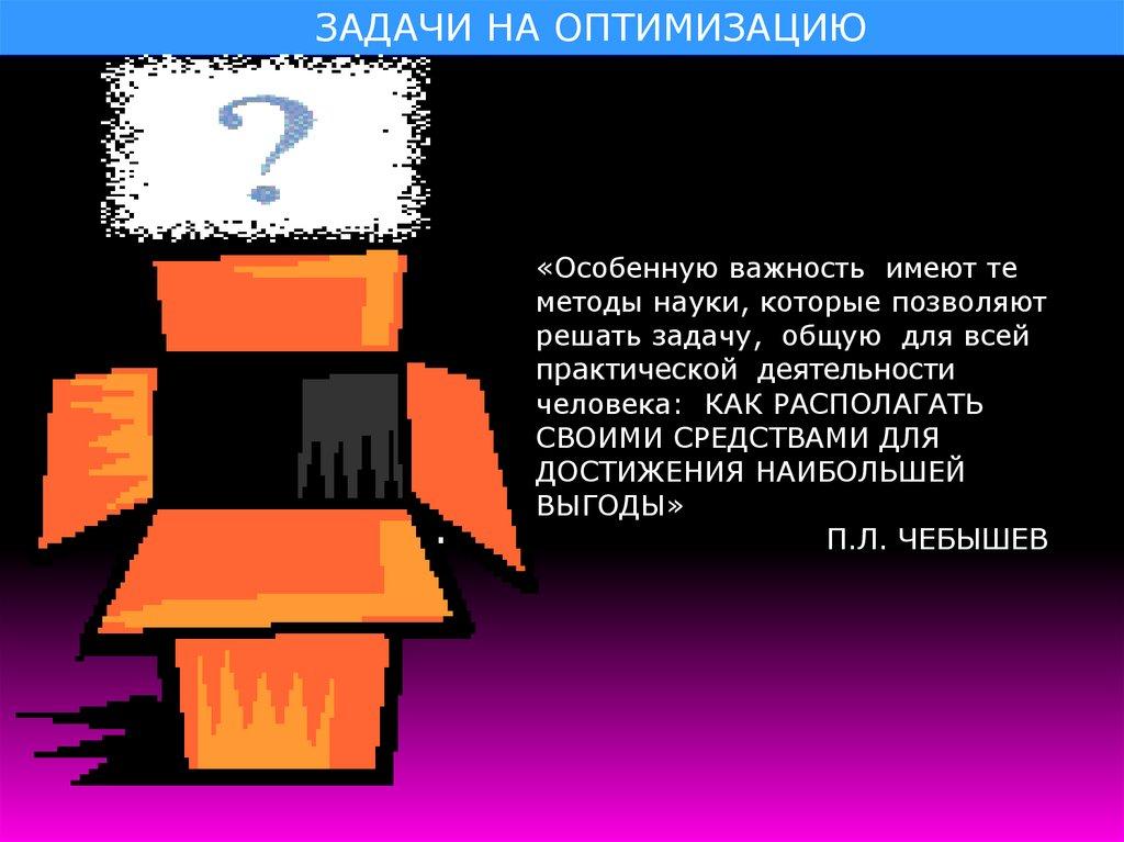 ЗАДАЧИ НА ОПТИМИЗАЦИЮ«Особенную важность имеют те