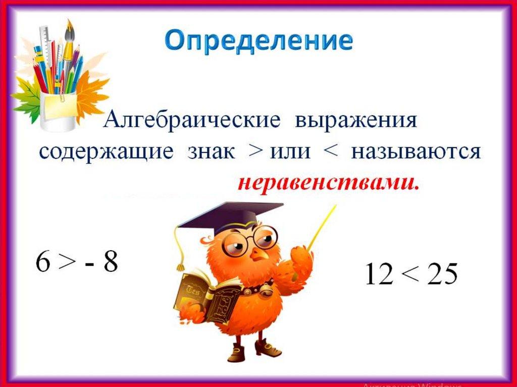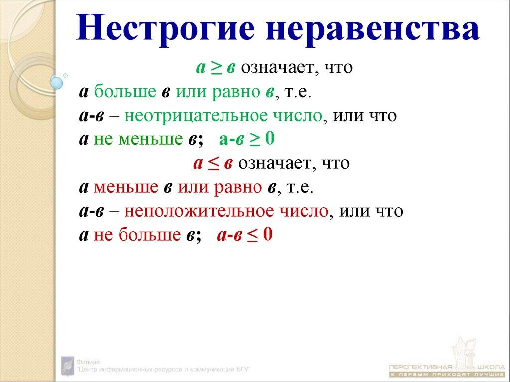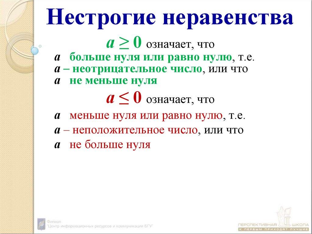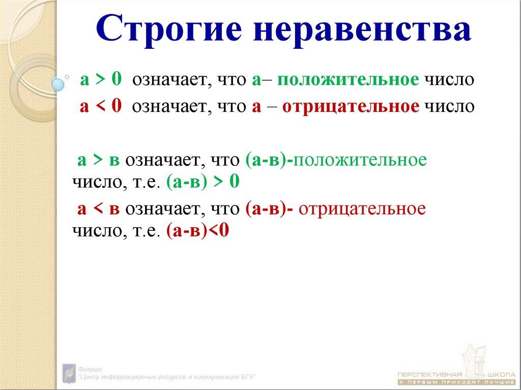 а > 0 означает, что а– положительное числоа < 0 означает, что а – отрицательное число